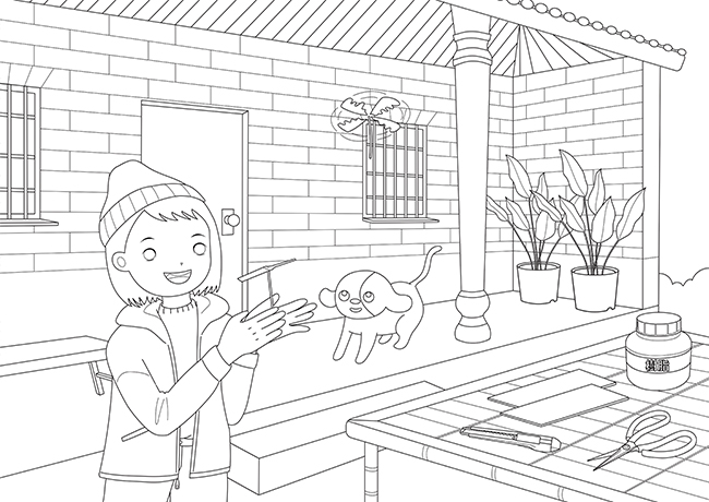 Mita拿著採收的豆芽菜,開心地說:「沒想到種豆芽菜那麼簡單!以後想吃豆芽菜,就可以自己直接動手種了!」 Mi爸說:「完全沒有問題,現在把豆芽菜交給媽媽吧!」